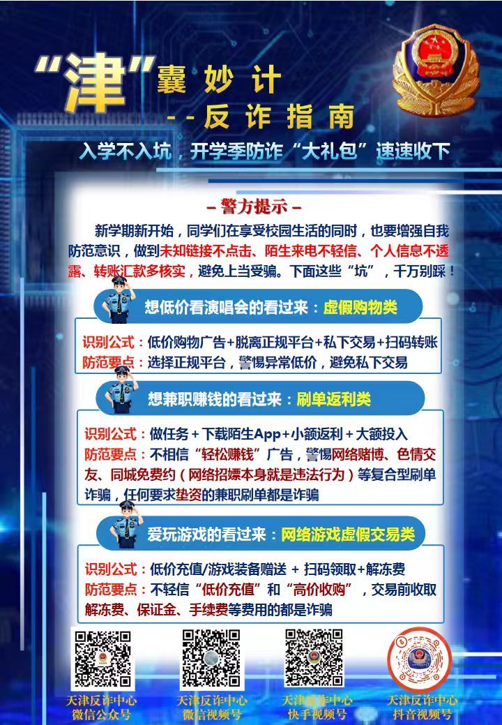“津”囊妙计反诈指南之二 入学不入坑,开学季防诈“大礼包”速速收下