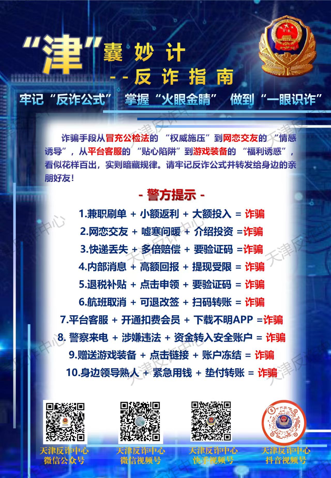 “津”囊妙计反诈指南之三 牢记“反诈公式”做到“一眼识诈”