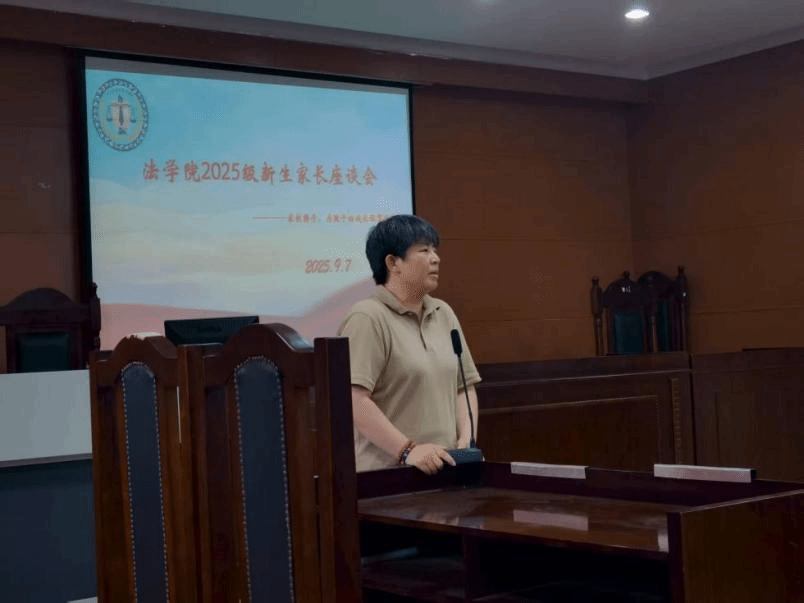 为凝聚“家校共育”共识,形成协同育人合力,法学院于迎新期间在模拟法庭召开2025级新生家长座谈会,搭建起学院与家庭深度沟通的平台。