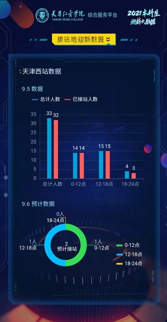 在综合服务平台中,全面统计了迎新大数据(大数据截图),全校师生能实时查看报到情况,为准备接待工作提供了更有效精准的服务。