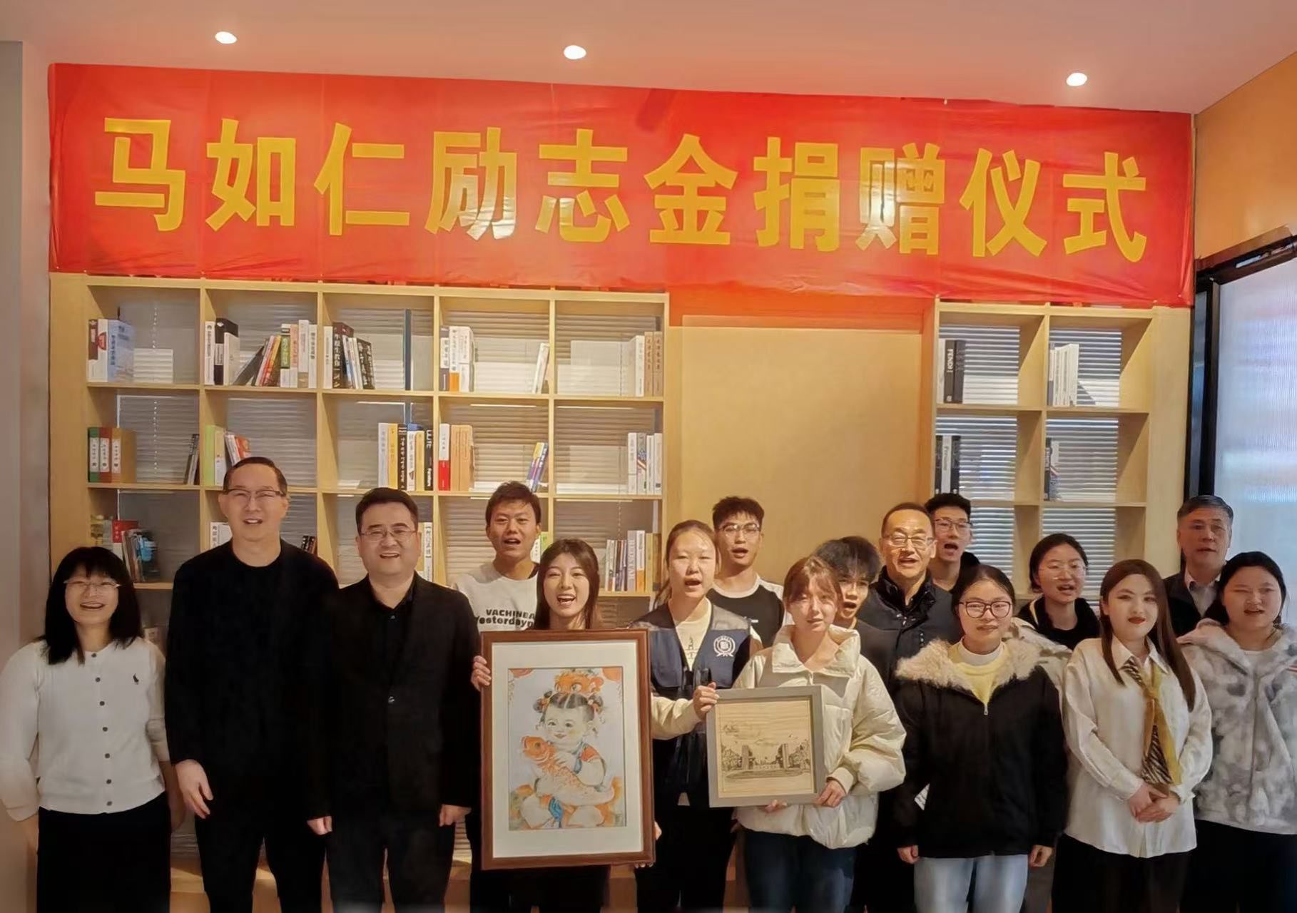 捐赠仪式上,学校向天津市仁爱教育基金会赠送了学生感恩作品《大美仁爱》和《莲年有余》。
