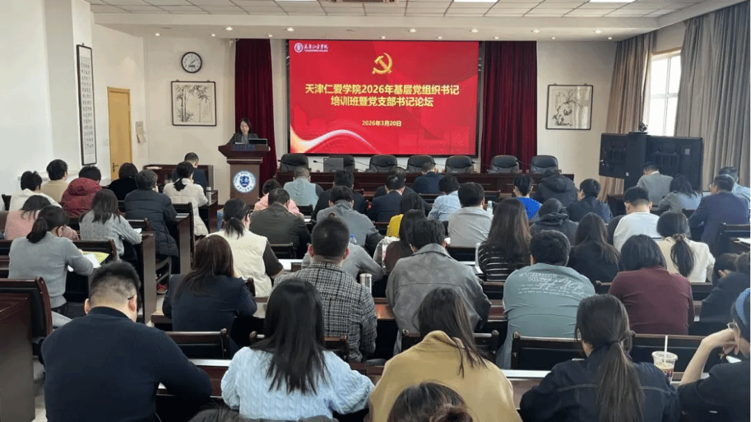 3月20日下午,天津仁爱学院2026年基层党组织书记培训班暨党支部书记论坛开班仪式在行政楼第五会议室举行。学院党委书记尚宇光、党委副书记李霞及全体仁爱学院基层党组织书记、副书记、组织员参加了开班仪式。会议由党委工作部第一部长王玮主持。