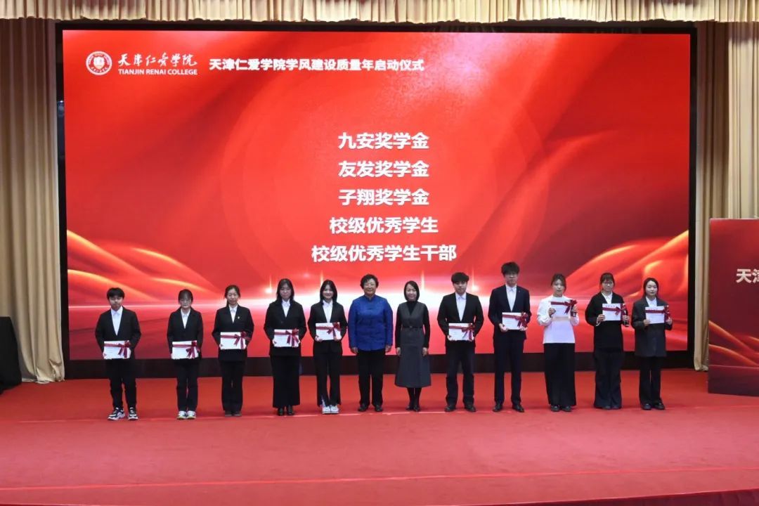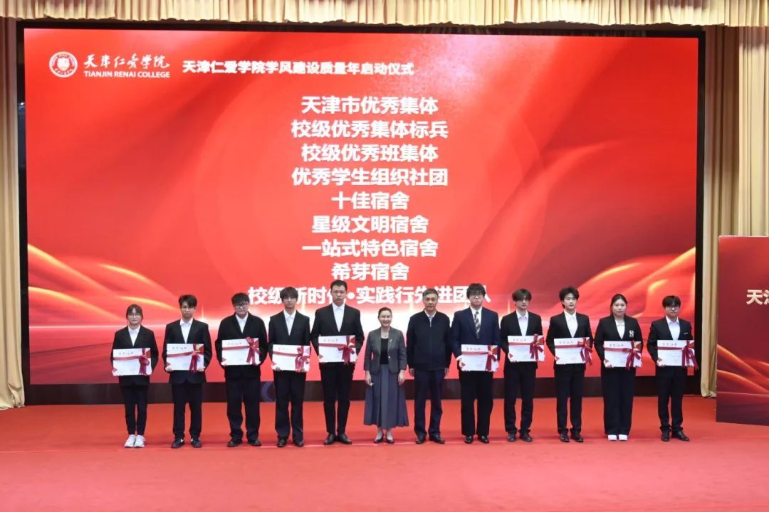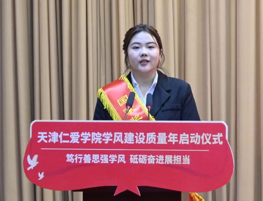 启动仪式以三个特色篇章对2023-2024学年的先进集体和优秀学生代表进行了表彰和访谈,以朋辈引领的示范效应营造勤学笃行的优良学风氛围。各学院家长代表和优秀校友代表通过云端寄语表达对学校学风建设的支持与期待。天津市三八红旗手、天津市优秀教师、数学教学部白建侠老师在发言中表示“要将学风建设作为立德树人的重要抓手,融入教育教学全过程”,展现了教师“教书育人”的责任与担当。第二届与第三届优秀学生领航宣讲团进行了交接仪式,宣讲团成员宣读学风建设倡议书,呼吁全体同学要立足学业根本,携手创建优良学风。