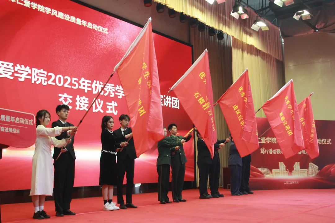 学风是大学精神的集中体现,是落实立德树人根本任务的重点关键环节。学校始终将优良学风作为治学之本、成才之本、立校之本。为营造“勤奋、善思、求真、创新”的育人氛围和学习风气,充分展现仁爱学子“实事求是、果毅力行”的精神风貌,学校于3月18日在大学生活动中心报告厅举行了“笃行善思强学风 砥砺奋进展担当”学风建设质量年启动仪式。校领导班子和师生代表共同参加启动仪式。