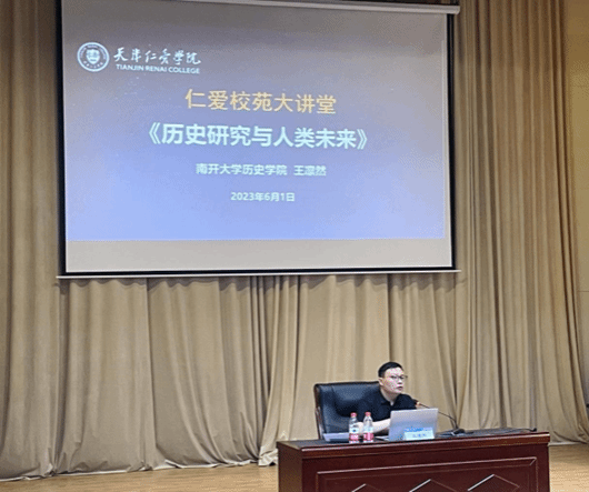 6月1日上午,南开大学历史学院王凛然副教授做客“仁爱校苑大讲堂”,为我校师生作题为“历史科学与人类未来”的专题报告。各学院师生学生代表400余人聆听报告。