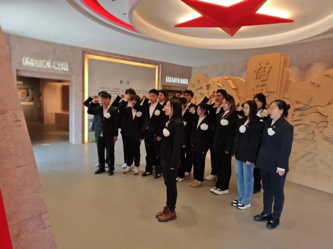 最后,师生集体参观了陵园内的革命历史纪念馆,一件件斑驳的文物、一张张泛黄的照片,瞻仰参观过程中,大家不时驻足凝视,互相交流。学生党员面对鲜红党旗一起重温了入党誓词,一声声青春誓言在纪念馆内久久回响,激励着新时代青年党员们牢记初心使命,勇担时代重任。