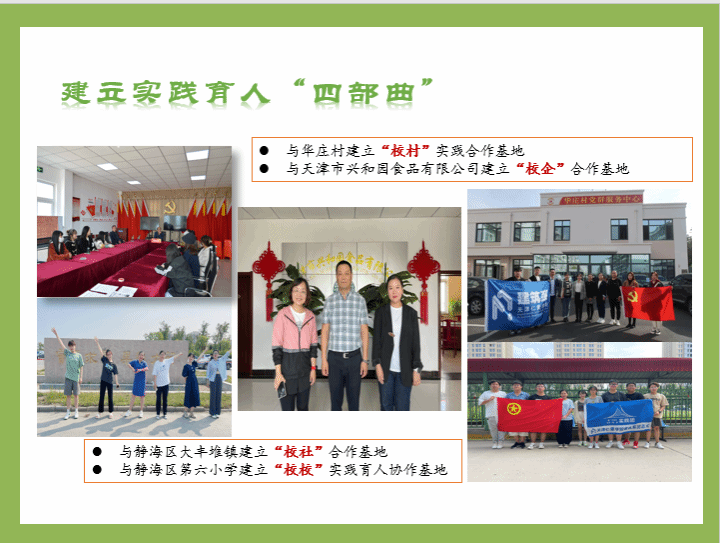 她建立了“实践育人四部曲”:建立“校村”“校企”“校社”“校校”实践育人基地,为本院系学生提供更多的实践平台。
