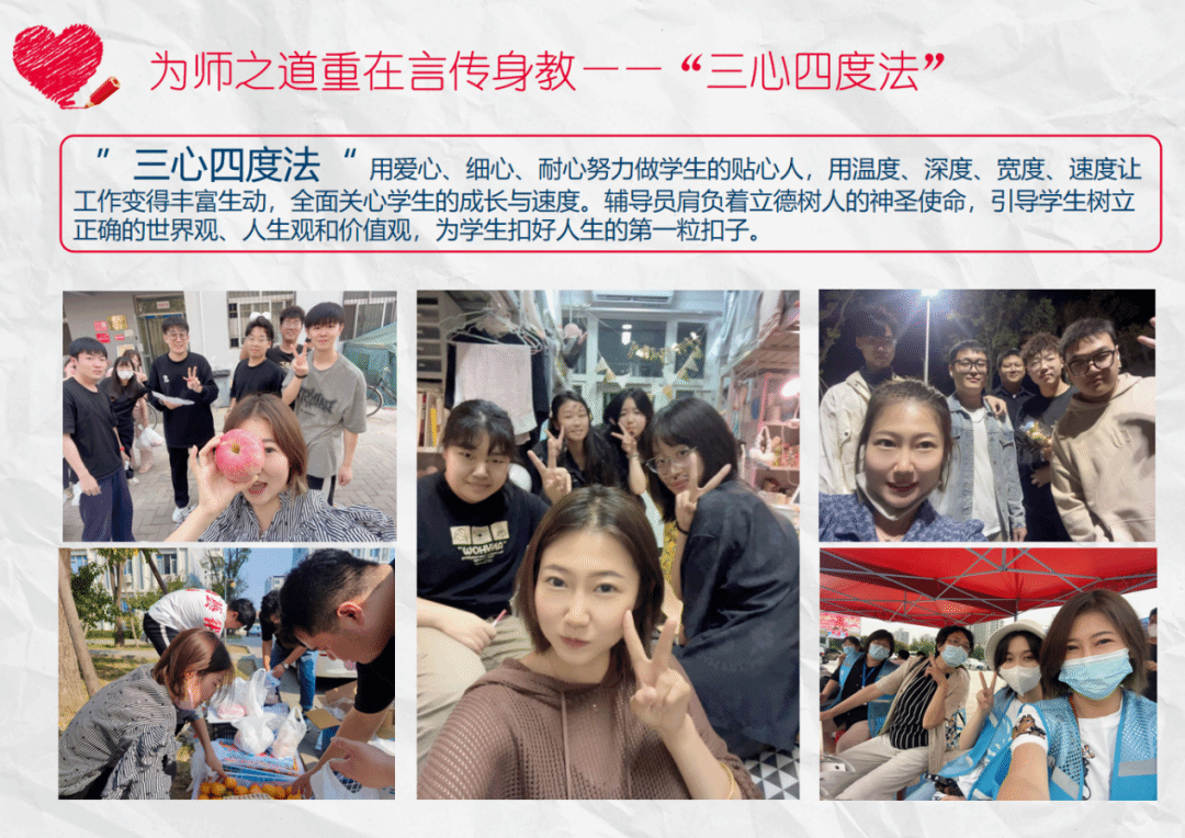 言传身教,立德于行。“为师之道重在言传身教”在日常工作中,她以身作则,严于律己,是学生心中值得信赖的姝姐,她用心探索学生工作中的 “三心四度法”“用爱心、细心、耐心努力做学生的贴心人,用温度、深度、宽度、速度让工作变得丰富生动,全面关心学生的成长与进步,为学生扣好人生的第一粒扣子