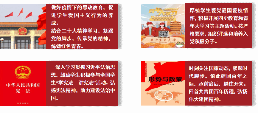 1、做好疫情下的思政教育,促进学生爱国主义行 为的养成。