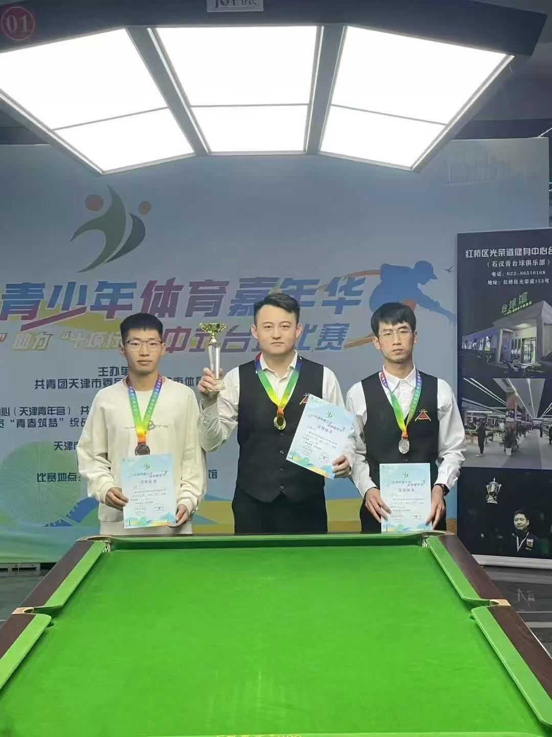 2023年11月25日,天津市青少年体育嘉年华中式台球比赛于光荣道健身中心台球馆顺利举行。在体育系李岩老师的带领下,经过激烈的角逐,我校台球队李博、杨佳昊同学分别取得第三名、第六名的好成绩。这是我校台球队建队以来首次参赛。