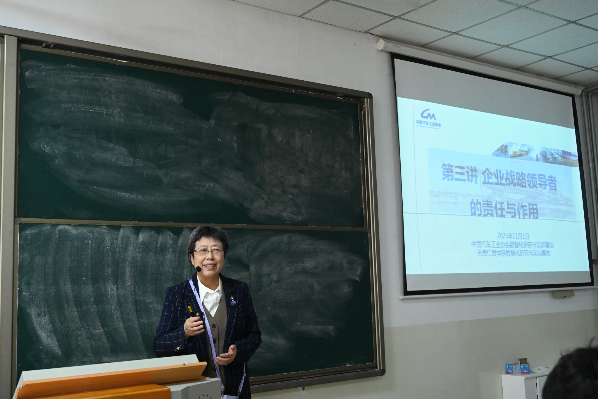 最后,中国汽车工业协会数智化研究与实训基地主任、天津仁爱学院教师郭焱作发言,她指出,天津仁爱学院经济与管理学院将继续依托校企合作平台,深化产教融合机制,通过专题讲座、实践教学与资源对接等多种形式,为学生创造更贴近产业实际的学习与成长环境,今后学院也将不断优化学风建设路径,创新育人模式,全力培养具有责任感、创新力和担当精神的高素质人才,为经济社会高质量发展贡献智慧与力量。