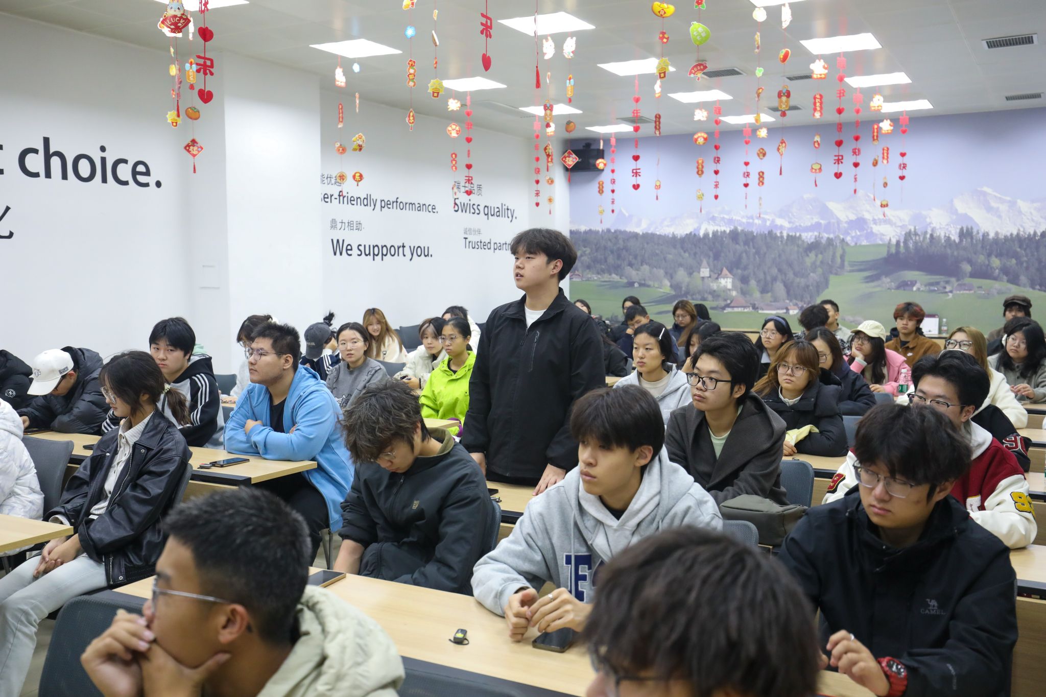 在智能化车间实地研学中,同学们从不同专业视角观察了智能制造现场。工业工程同学重点关注了生产线的流程布局、AGV小车的物料调度路径以及人机协作效率;信息管理与信息系统同学则深入探究了驱动这些设备高效运转背后的数据流,AGV如何通过数据库实时调用位置信息,以及其如何与ERP、MES等系统集成实现协同作业。百超(天津)激光科技有限公司采购工程师、2022届校友杨文莹结合自身工作,为学弟学妹们剖析了信管技术在确保数据精准流通与系统高效联动中的关键作用。