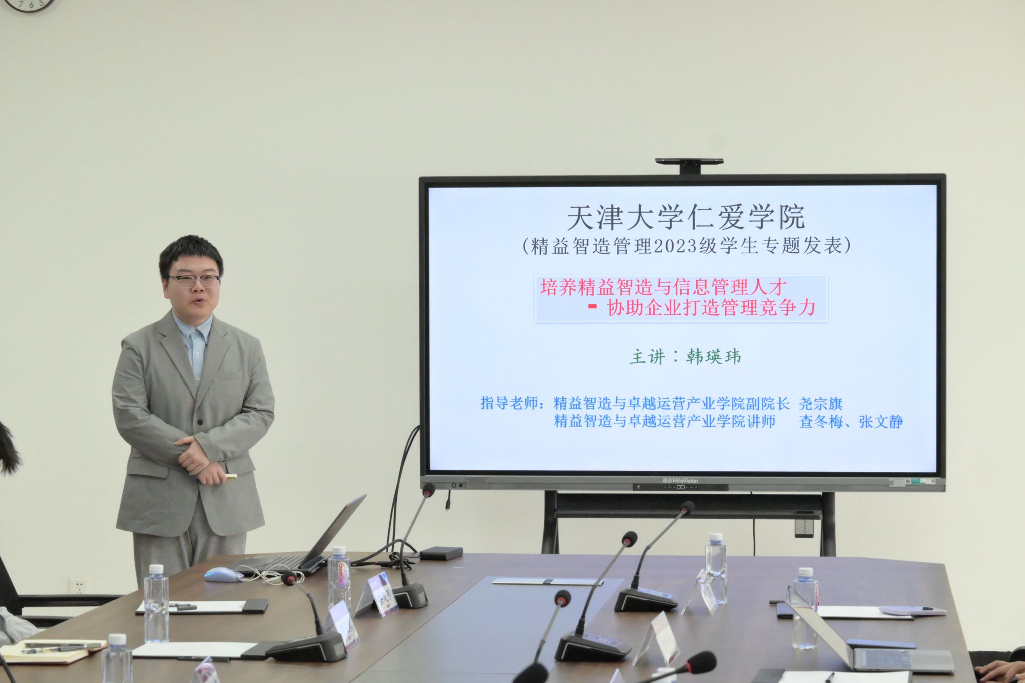 随后,2023级韩瑛玮、张国香、刘欣雨、赵玉露、牛嘉豪、秦杨等学生代表围绕“制造企业精益运营管理整体架构仿真模拟”主题进行成果汇报,内容涵盖交货预警系统建立、电脑辅助排程、物料需求计算、现场报工与5S管理、生产进度监控等课题。同学们逻辑清晰、数据详实,展示了扎实的专业能力和实践素养,获得企业嘉宾高度评价。