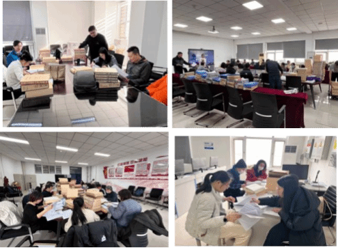 行动期间,两院教学副院长就互查人员调配、工作量核 定、检查表规范填写与签字确认、检查场地布设及文档搬运等具体事宜进行了周密部署。互查工作采取分组协作模式,全体教师深入各会议室及实验室,对 22232 学期至 24252 学期的理论课教学资料及毕业设计进行了“全覆盖、无死角”的穿透式检查。在互查现场, 双方教师秉持严谨求实、互学互促的态度,严格对照指标体系逐项复核并签字背书,确保了教学档案存量的真实性与过程管理的规范性。