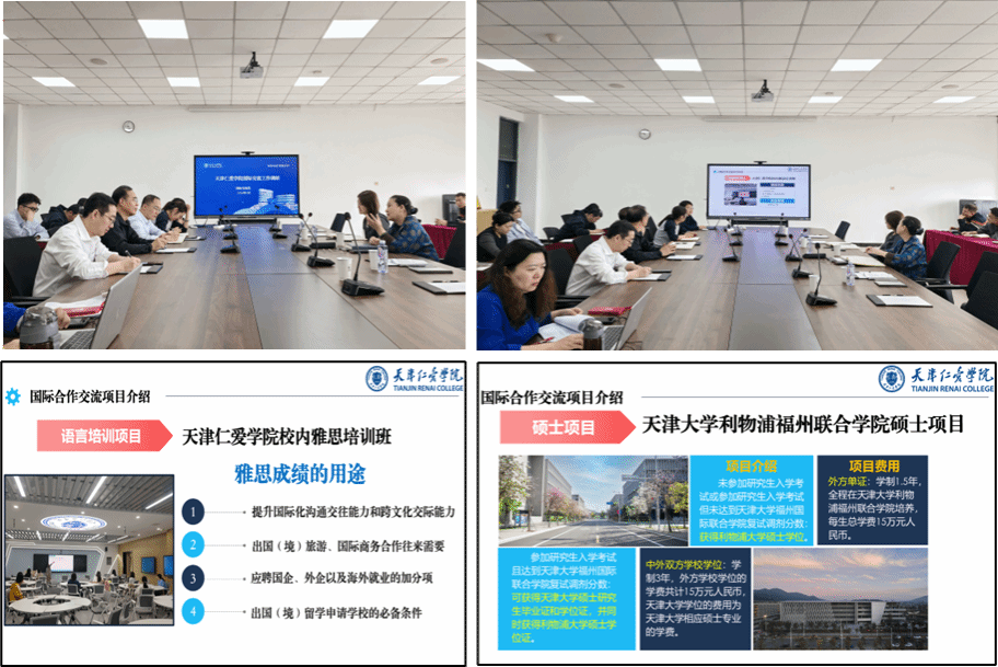 会上,国际处围绕校内雅思培训、中外合办硕士、本硕联合培养、海外研学、德国双元制留学等项目进行详细介绍,说明项目优势、申请条件、费用标准及升学路径。与会人员就项目对接专业、学生适配度、申请流程、语言提升、就业支持等关键问题展开深入讨论交流,明确下一步推进方向。