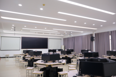 实验室使用面积近400平方米,配备学生机172台、金融AI智柜、多媒体计算机教学设备及LED显示屏等,可实时显示证券信息数据,部署用友新道DBE数智化实践教学平台、钱龙证券和期货模拟教学软件、智盛商业银行仿真实训平台等,设备总价值361万余元。支持学生开展投资操盘演练、数智金融营销实训、人工智能金融实训等实践操作。
