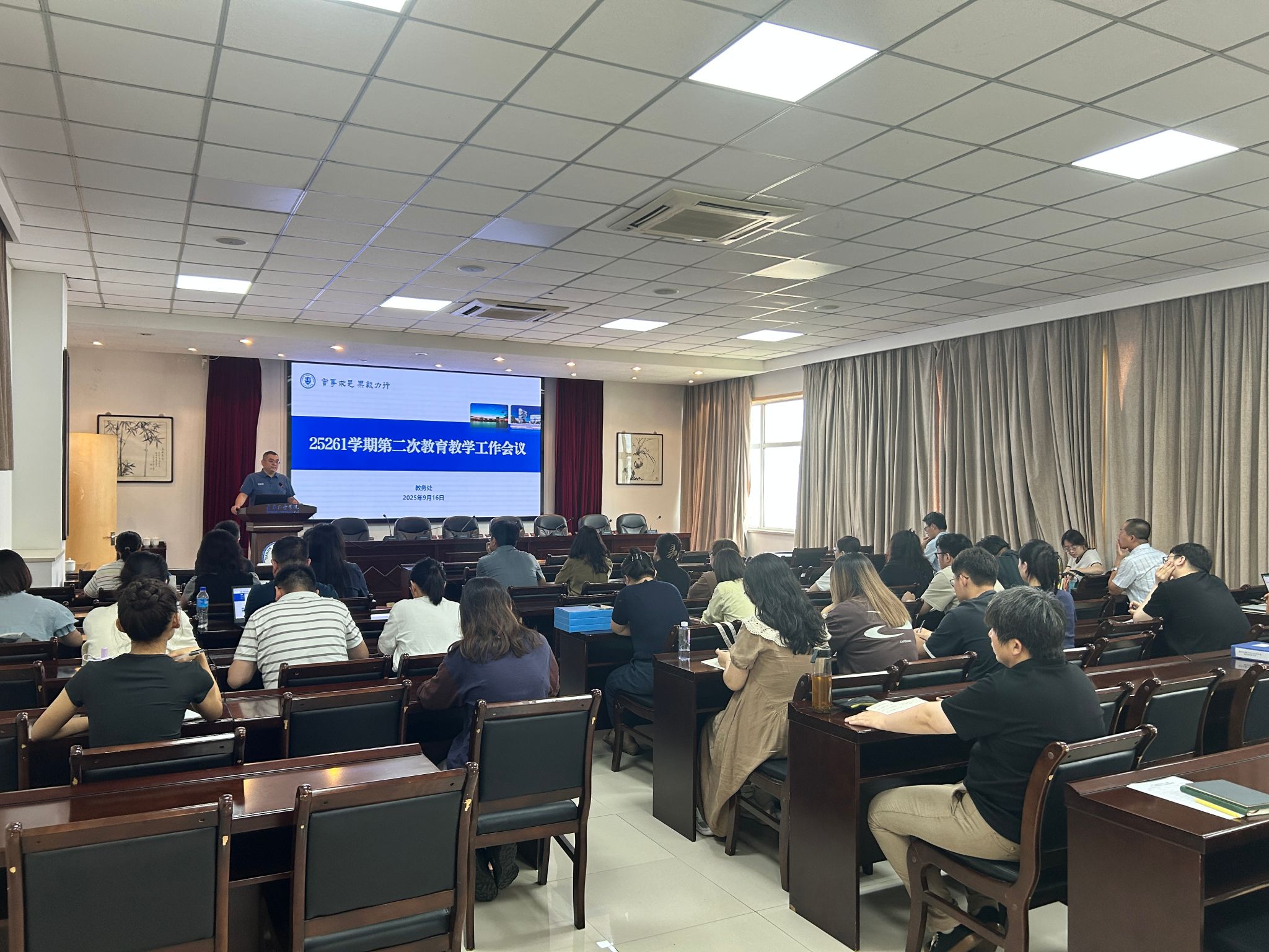 2025年9月16日,我校召开2025年秋季学期第二次教育教学工作会议,教务处处长刘民杰,人事处处长胡琦,各教学部主任,各学院教学副院长、各教学单位教学助理(秘书)参加本次会议,会议由教务处刘民杰处长主持。