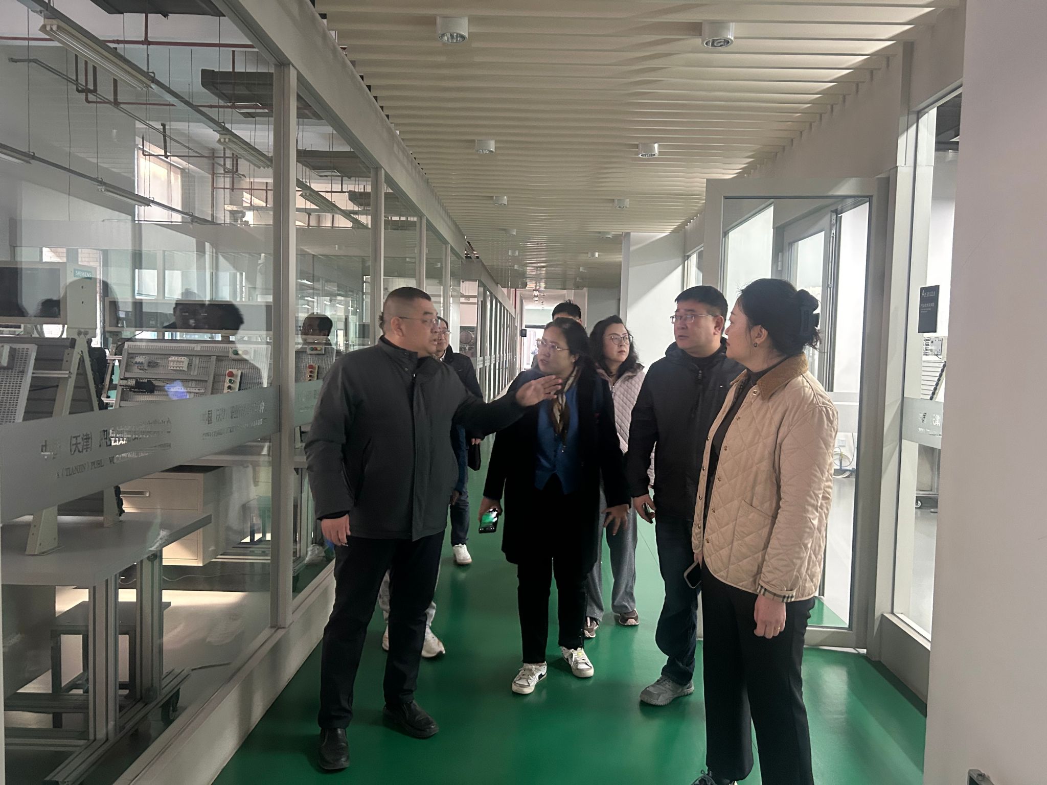 走访最后,我校一行人员实地参观了实训中心的先进制造技术、工业机器人、现代物流等多个现代化实训室,认真观摩了先进设备运行与学生实操训练场景,对中心完善的基础设施、规范的管理模式以及贴近产业前沿的实训环境给予了高度评价。