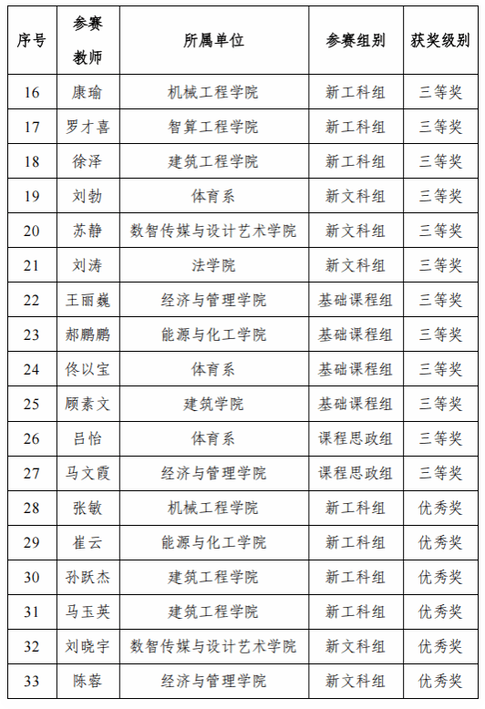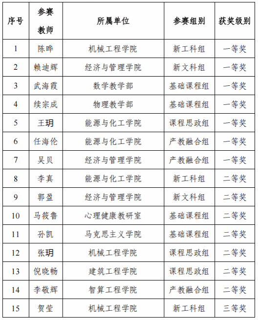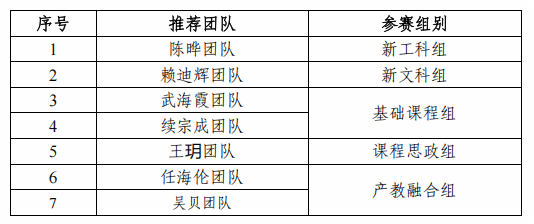 按照比赛结果及《市教委关于举办第五届全国高校教师教学创新大赛天津赛区比赛的通知》(津教高函〔2025〕9号)文件要求,推荐参加第五届全国高校教师教学创新大赛天津赛区比赛的团队如下: