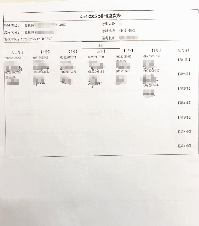 11.考试座次表(考查课可不提供)