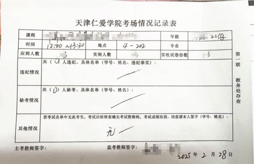 10.考场记录单(考查课可不提供)