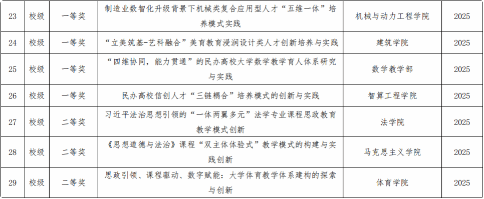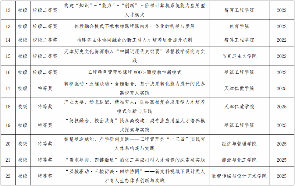 天津仁爱学院教学成果奖一览表