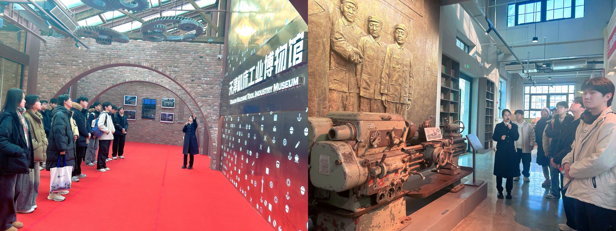 天津机床工业博物馆作为承载我国北方机床工业发展记忆的重要载体,馆藏了从晚清时期的老式机床到现代智能加工设备的各类展品,每一台机床都镌刻着我国制造业从落后到追赶、从模仿到创新的奋斗足迹。活动伊始,博物馆讲解员结合详实的史料与实物,向同学们系统介绍了我国机床工业在不同历史时期的发展状况:从建国初期依赖进口的窘迫,到自力更生研制出第一台精密机床的振奋;从改革开放后技术引进与消化吸收的探索,到新时代在高端数控机床领域攻坚克难的坚守,一幕幕历史场景让同学们对制造业“大国重器”的战略意义有了直观认识。