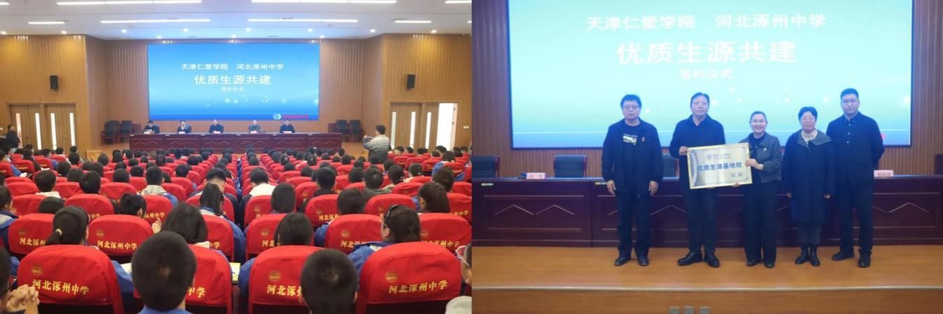 为持续做好招生宣传工作,增进与重点高中有效交流,不断提升生源质量,11月19日,天津仁爱学院副校长傅利平一行赴河北省涿州中学开展优质生源基地建设活动,涿州教体局党组成员、河北涿州中学党委书记李宗臣、天津仁爱学院机械工程学院党总支书记闫飞、招生办副主任周珂玮共同出席协议签署和授牌仪式。