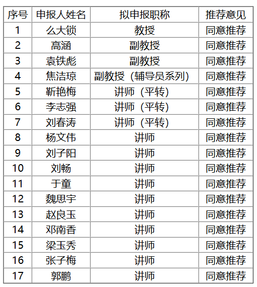 根据《关于开展2025年专业技术职称评审工作的通知》(仁爱学院校发[2025]77号)具体要求,机械与动力工程学院制定了《机械与动力工程学院2025年专业技术职称评审推荐工作安排》,经对申报人评审材料进行为期1天的公开展示和申报人公开宣讲业绩,专业技术职称工作推荐小组对申报人的各项情况进行充分评议,现将拟推荐结果公示如下: