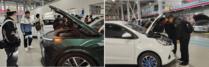 本次实践活动通过现场观摩与部分实操,使学生准确识别纯电动、混合动力、增程式三类新能源汽车的“三电”(电池、电机、电控)等核心部件的结构和工作原理,清晰理解不同类型新能源汽车的结构差异,为后续课程学习奠定了一定认知基础,激发了学生学习新能源汽车的热情。