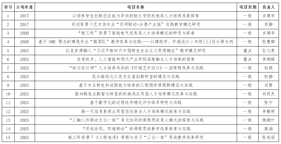 教育教学改革是推动学校内涵发展的关键动力。天津仁爱学院始终将教改研究作为提升人才培养质量的核心驱动力,积极鼓励教师围绕课程体系、教学模式、实践教学等关键环节开展创新性探索。现将我校近年来获批的市级教改课题予以集中展示,旨在呈现我校教师在教育教学改革前沿的思考与实践。这些课题的开展,对强化教学特色、提升育人水平具有重要意义。