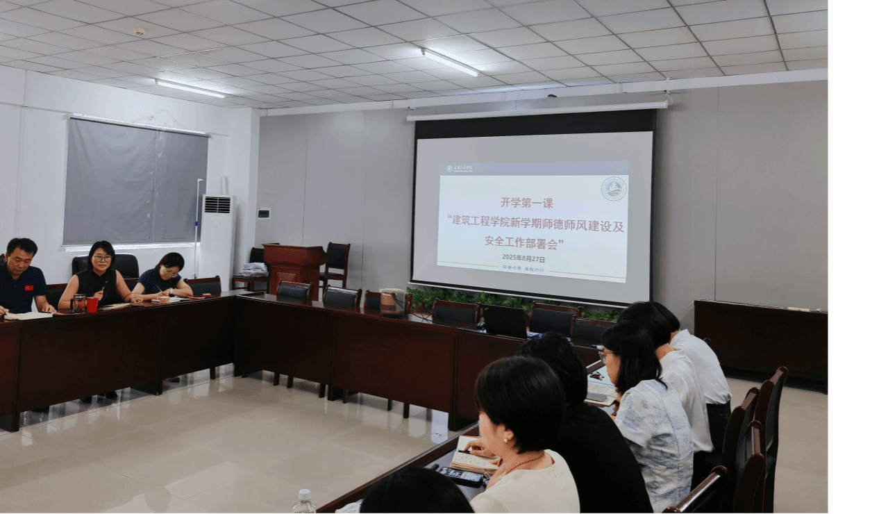 2025年8月27日,建筑工程学院召开秋季学期全院教职工大会,围绕科研创新、教学改革、学生管理及迎评促建等多项重点工作进行部署。会议由学院领导主持,全体教职员工参加。