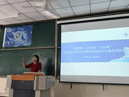 最后,党总支书记郑云菲以“大学之道,在明明德,在亲民,在止于至善”开篇,围绕“强党性、正学风、当先锋”主题开展了一堂生动的微党课,为全体师生注入深刻思想动能。郑书记指出,“大学之道”所倡导的修养与担当,正是当代学风建设的精神内核。她结合教学评估要求,强调教师应以“德”涵养治学初心,用“止于至善”校准学习工作标准:党员教师要在课程建设、实践指导中争当表率,将党性修养融入教学全过程;学生应以“修身”立本,主动组建学习帮扶小组、参与课堂纪律监督,带动全院形成“比学赶超”的优良风气,以“大学之道”的时代实践,为学院迎评促建与人才培养筑牢根基。