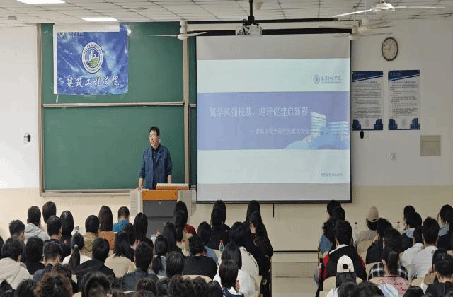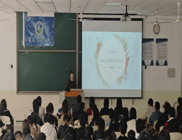 为响应学校关于加强学风建设的整体部署,凝心聚力迎接本科教学评估,建筑工程学院于2025年10月15日在4教109教室召开以“助学风强根基,迎评促建启新程”为主题的学风建设大会。学院领导班子、各专业教师以及优秀学生代表共200余人参会。