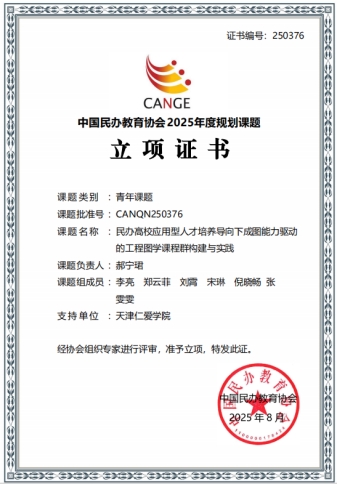 此外,在中国民办教育协会公布的2025年度规划课题(青年课题)立项名单中,建筑工程学院获批1项课题立项。