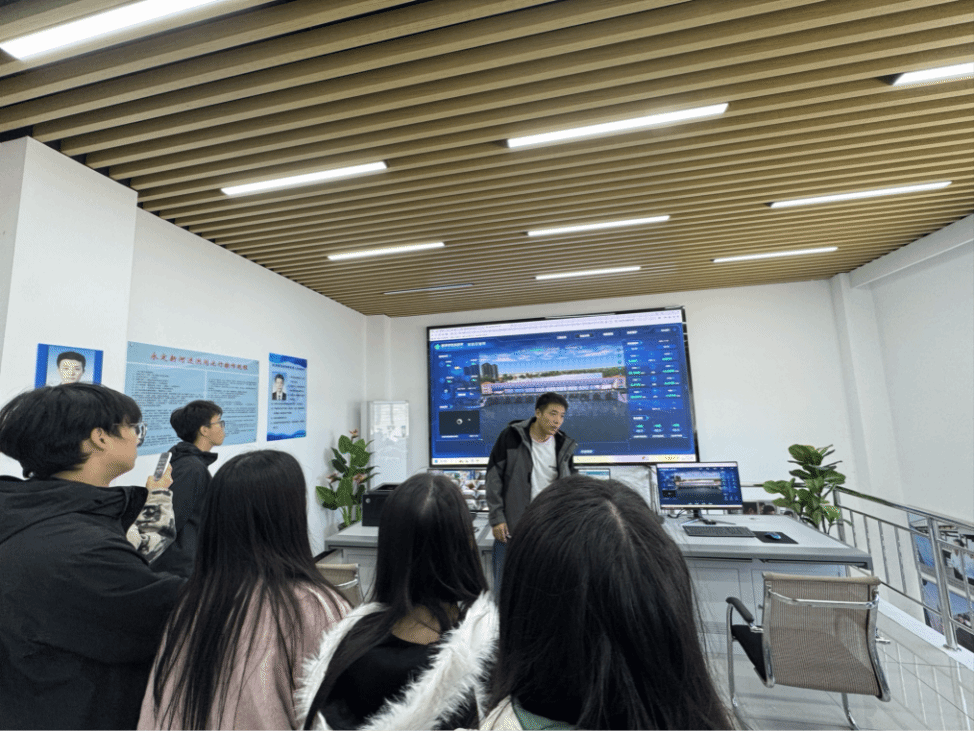 在管理处专业讲解员带领下,成员们实地观摩水闸枢纽,了解其防洪排涝功能、运行原理及日常维护要点,直观感受水利工程的实际效能。在智慧水利系统展示环节,成员们通过中控室平台,了解了物联网、大数据及数字孪生技术在水位监测、险情预警中的实际应用。