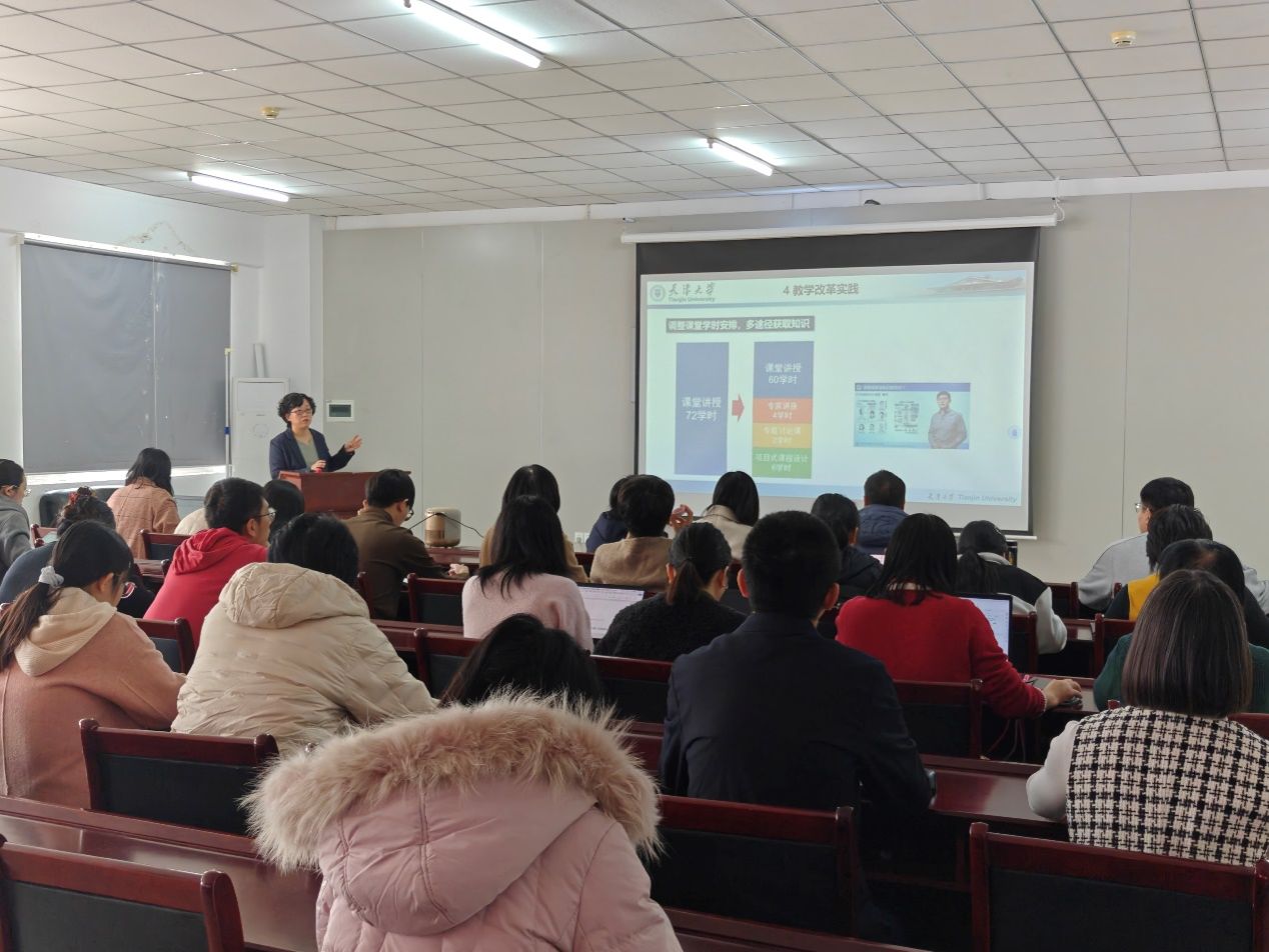 翟洪艳副教授作为国家级一流本科课程“环境分析监测”的主讲教师,从课程建设的顶层设计、教学内容重构、教学方法创新等方面系统分享了宝贵经验,并赠送其主编的教材。她指出,一流课程的建设不仅要注重知识体系的科学性与前沿性,更要强化与学生能力培养和素质提升的有机结合。在教学过程中,她注重将科研项目与地方水源保护、环境监测等实际案例融入课堂,推动“教学-科研-实践”三元融合,有效提升了学生的综合分析能力与创新意识。