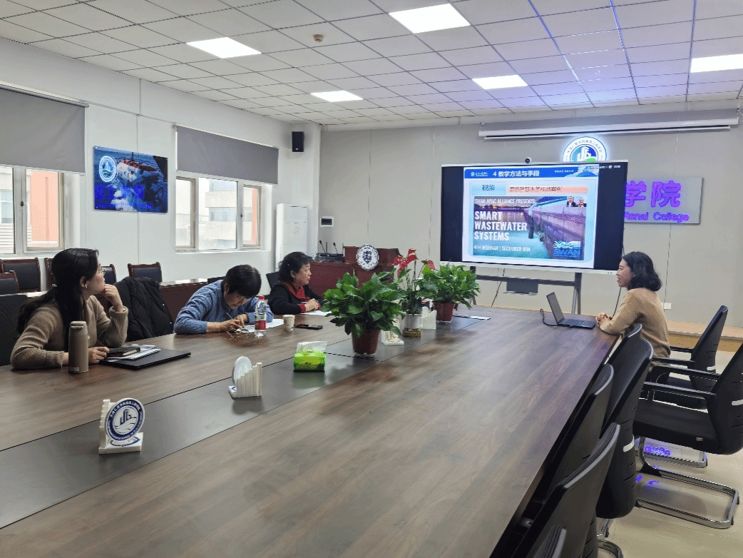 随后,昝日霞老师对《智慧水务概论》课程进行了教学分享。她利用图文并茂的多媒体课件,结合“智慧水务系统(Smart Wastewater Systems)”等国际前沿视频案例,详细解说了该课程的教学方法与手段。生动展示了如何引导学生理解行业前沿技术,有效激发学生的学习热情。