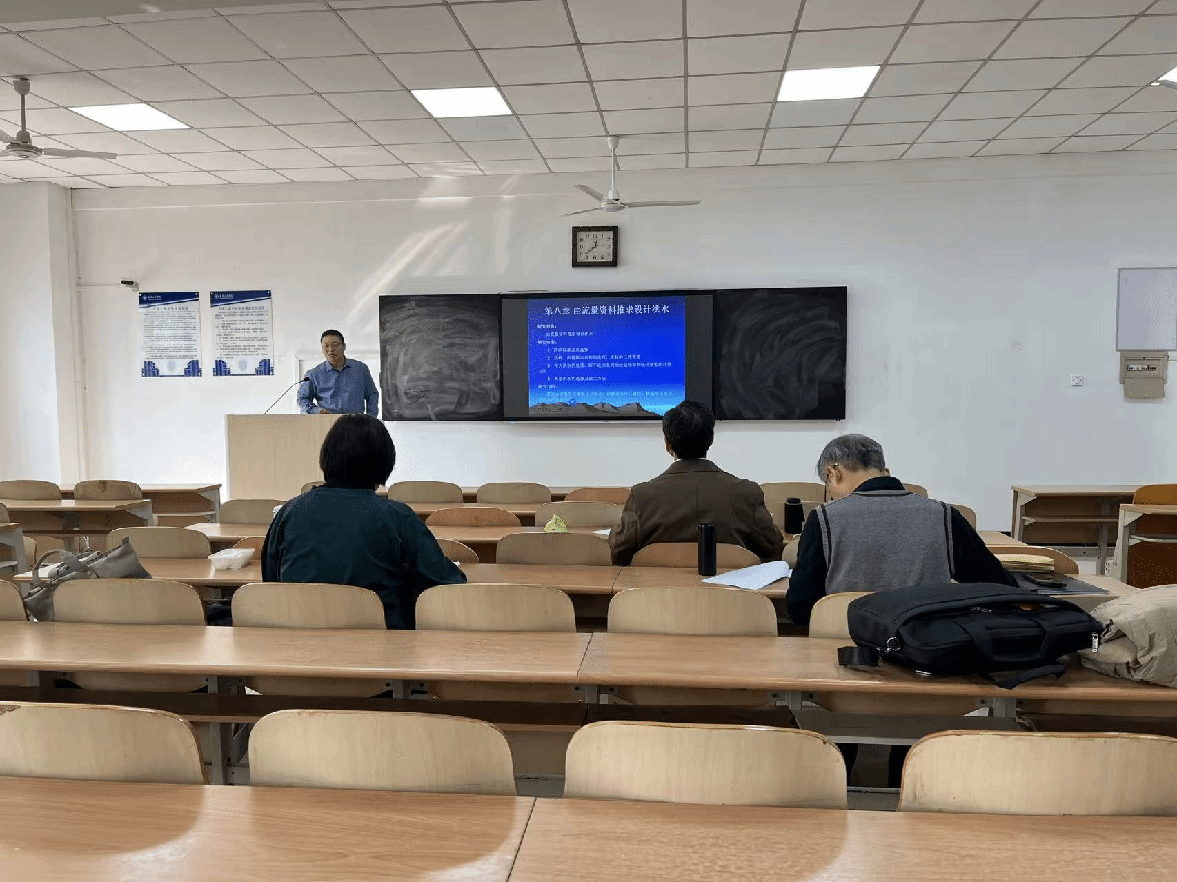 师艳景老师的《水力学2》聚焦高速水流相关内容,从东谷水库溢洪道水毁等工程案例切入高速水流定义,系统分析压强脉动、空蚀、掺气、冲击波等高速水流的水力学问题,探究相应工程防治措施,板书与 PPT 配合默契,以问题为导向引导学生思考。专家肯定其授课内容选择恰当、逻辑流畅,结合工程实例讲解易引发学生学习兴趣,同时建议从问题根源展开讲解,优化教学画面选择,进一步对比高速水流与普通、低速水流的特性差异。