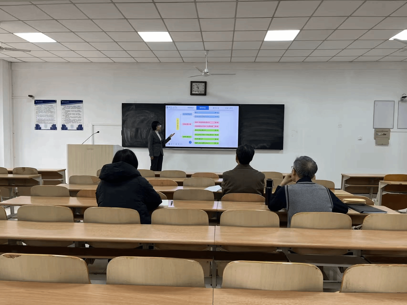 为深入贯彻OBE教育理念,深化课堂教学改革,落实本科教学工作合格评估要求,优化教学设计、打磨教学细节,切实提升教师教学设计与课堂授课能力,推动教学质量持续提升,2026年2月27日,建筑工程学院在学校智慧教室3-206开展2025-2026学年第二学期第二次集体磨课活动。学院相关任课教师参与本次活动,刘佳、刘平、马玉英、孟令超、倪晓畅、师艳景、王静等教师依次进行教学展示,马华、张书廷、朱济祥等银龄专家担任点评嘉宾,现场精准指导教学工作,指出教学亮点与改进方向,实现以磨促教、以研促学、以评提质的活动目标。学院领导院长李亮、书记郑云菲、副院长刘霄也一同出席研讨。