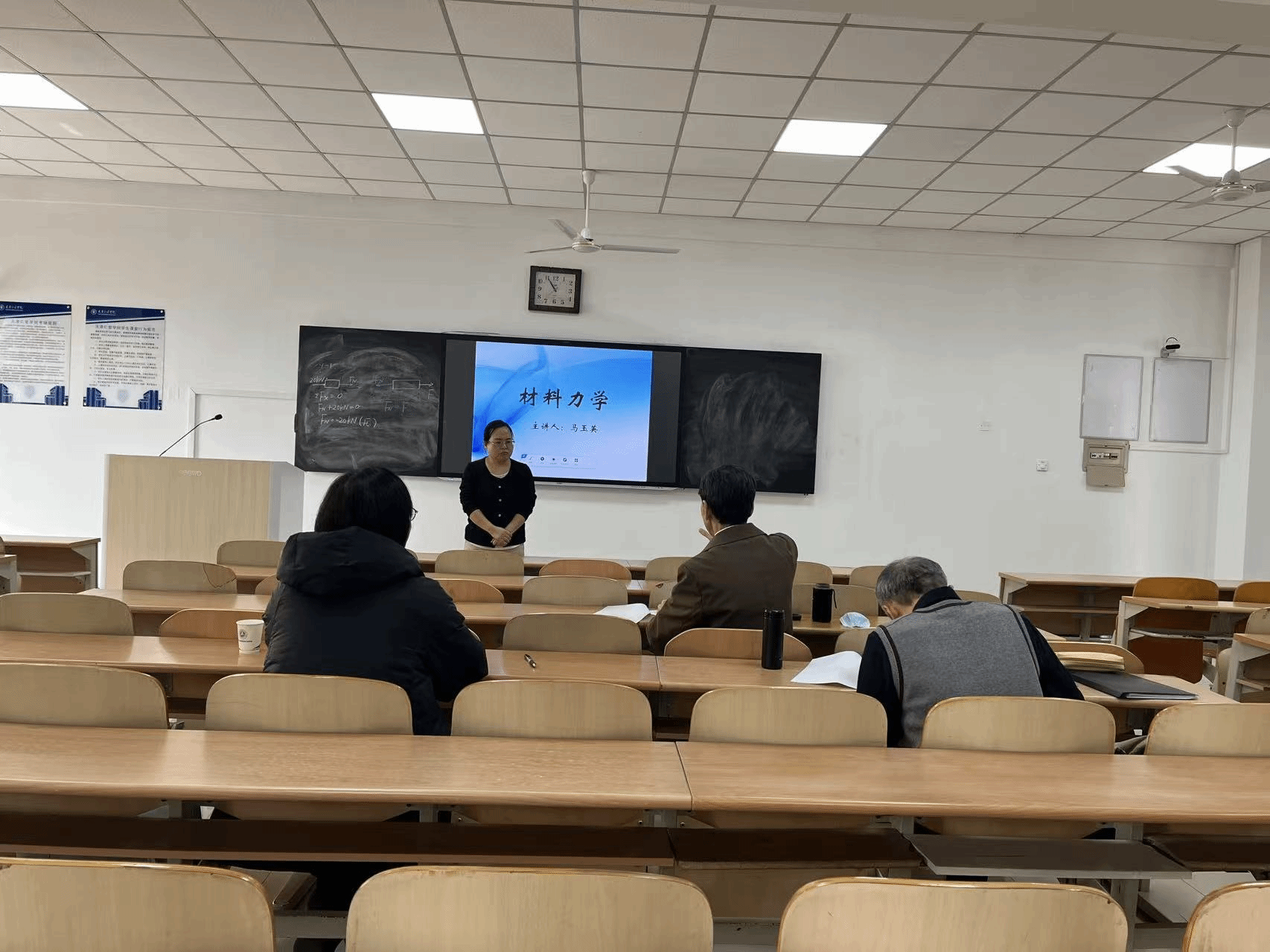 马玉英老师主讲《水利工程测量》与《材料力学》。《水利工程测量》以水准仪及水准测量为核心,系统讲解测量原理、仪器使用、水准路线闭合差调整等专业知识,融入红旗渠水准测量的思政故事,结合学习通平台设计互动环节;《材料力学》聚焦轴向拉伸与压缩章节,阐释内力、截面法等基础概念,通过讨论题和例题强化学生知识应用能力。专家点评其教学内容熟练、复习环节设计有特色,同时建议精简《水利工程测量》课程视频时长、规范视频与参数编号,《材料力学》可增加内容深度、结合更多例题讲解,授课时注意避免单手遮挡板书。