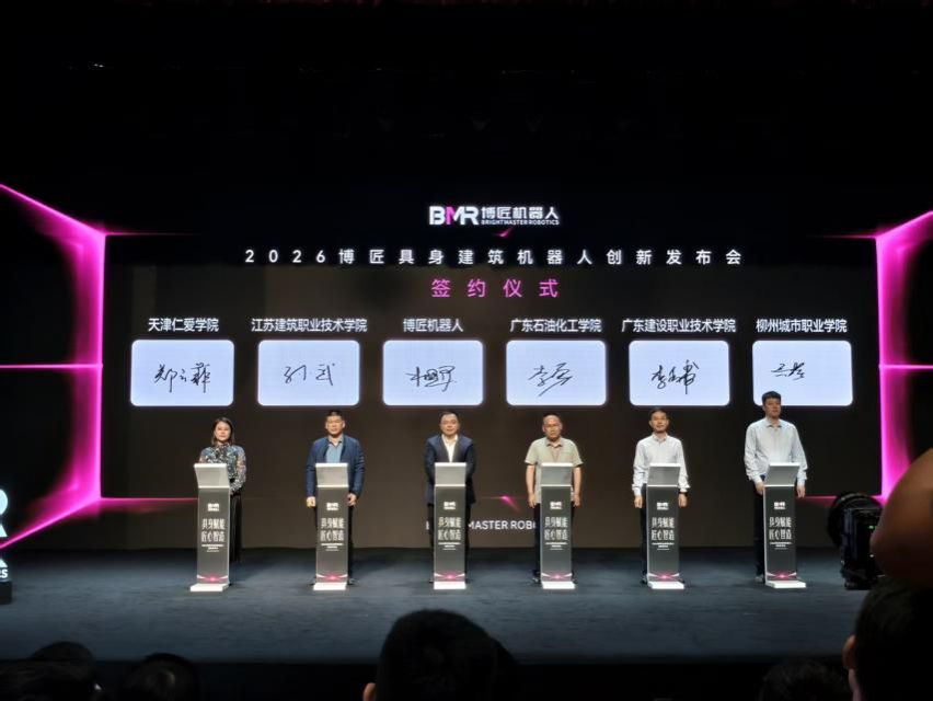 发布会上,郑云菲书记代表学校进行了校企合作签约仪式。作为博匠机器人有限公司在华北地区唯一的产业学院共建高校,此次签约进一步提升了学校的行业知名度,也标志着智能建造与智慧运维产业学院的建设和发展迈出更加坚实的一步,人才培养更加对接市场需求。