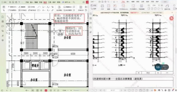 培训中,陈工以18届国赛赛题为例,结合自身丰富的一线工程经验,系统讲解了高效识图技巧。内容涵盖图纸整体概览、关键参数快速识记、平面图与立面图的对应关系,并针对比赛中常见的图纸错误识别与应对办法进行了重点剖析,帮助同学们快速掌握识图核心能力,提升建模效率与准确性。