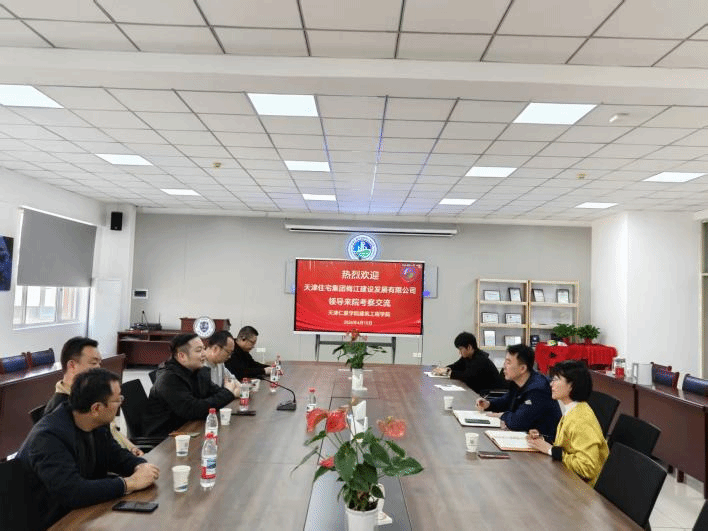 参观结束后,校企双方召开座谈交流会,围绕人才培养、 产教融合、科教融汇 等议题展开深入探讨。李亮院长代表学院对戴博智经理一行的到来表示热烈欢迎,详细介绍了学院的发展历程、办学成果、专业建设规划以及当前学院转型发展的核心方向,着重阐述了学院以产教融合为抓手、培养高素质应用型智能建造人才的办学理念。戴博智经理就 天津住宅集团、 梅江建设发展有限公司的企业概况、业务范围、发展 规划及 行业人才需求 等方面进行全面介绍,表达了与学院开展深度合作的强烈意愿。