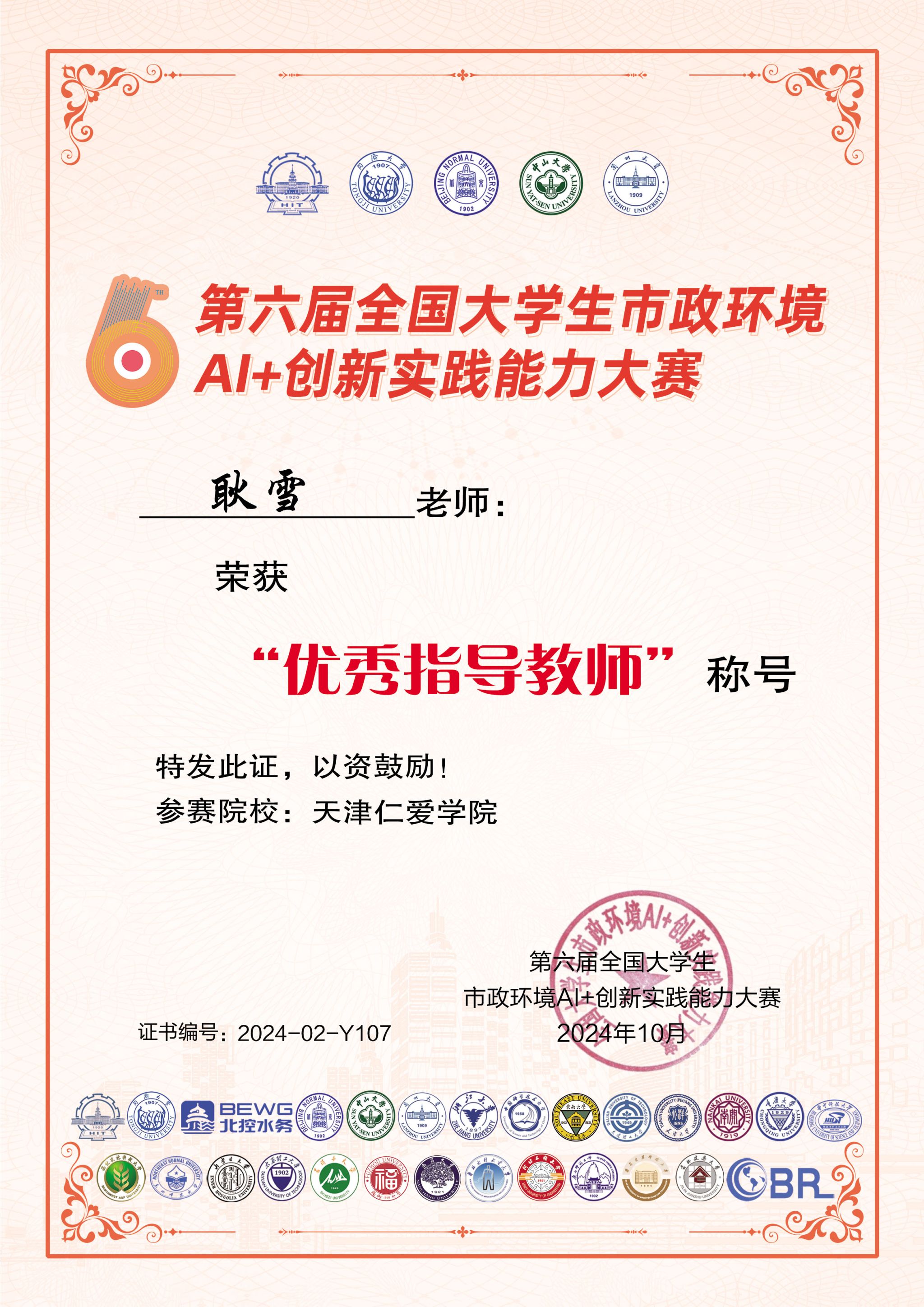 耿雪,讲师,天津大学环境工程专业硕士,主要研究方向为给排水管道系统运行管理与智能技术。参与国家自然科学基金、国家水体污染控制与治理科技重大专项,主持横向课题3项,参与纵、横向课题10项,共计发表论文10篇,授权实用新型专利2项,参与编写天津大学“双一流”高校建设“十四五”规划系列教材。指导学生获国家级大创2项、市级4项,并在多项学科中竞赛。