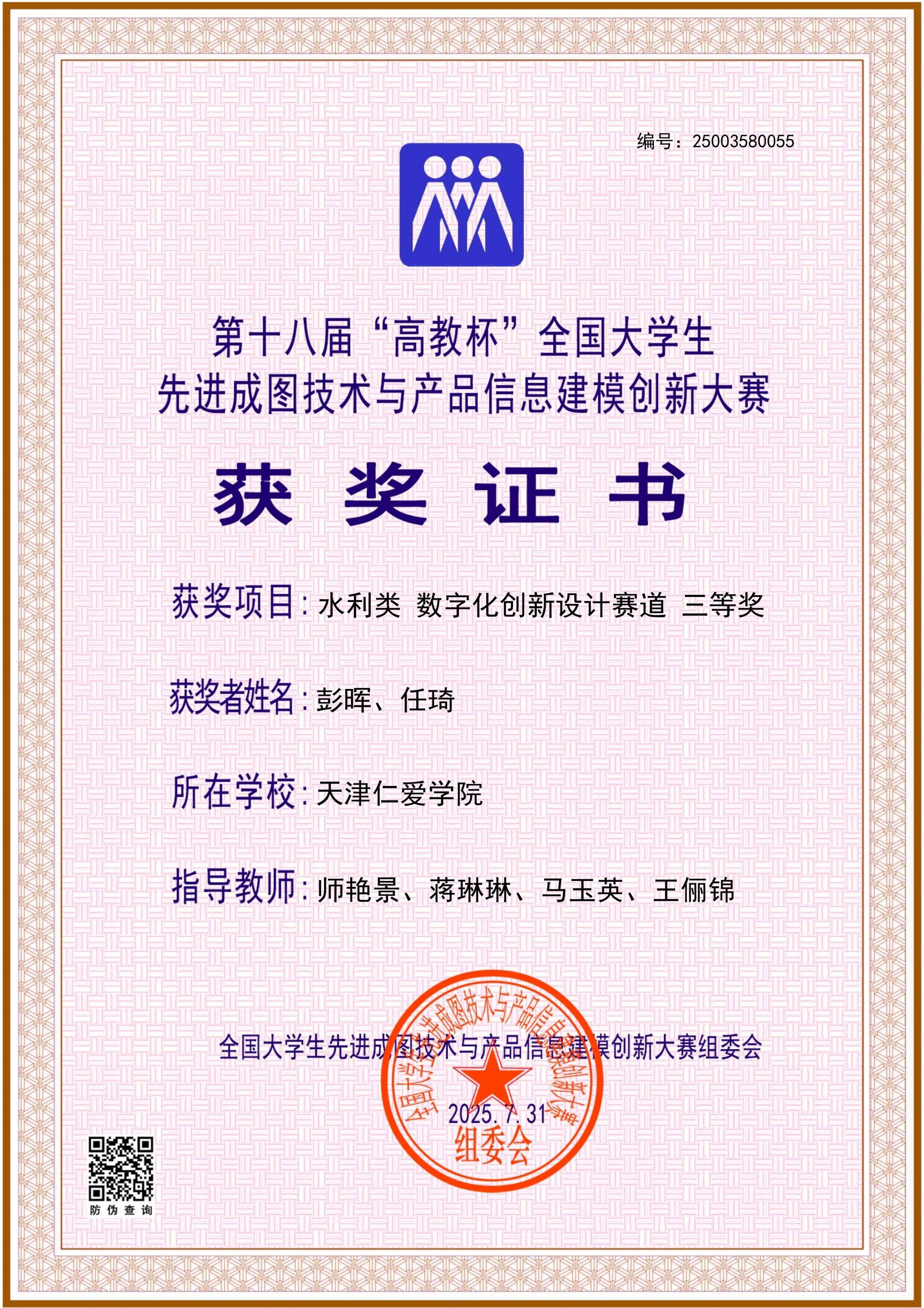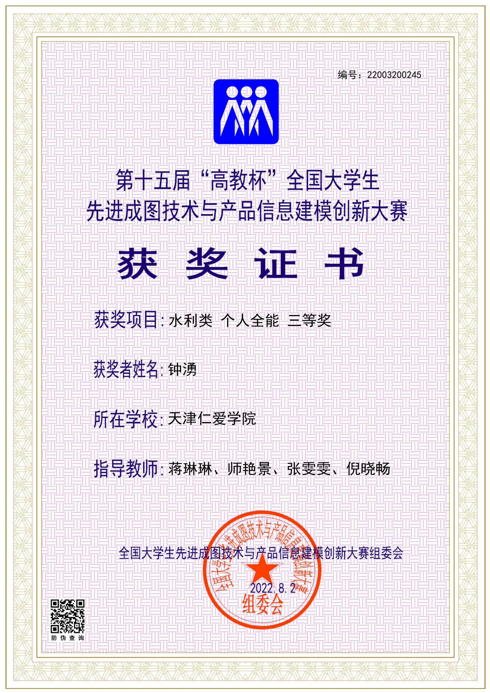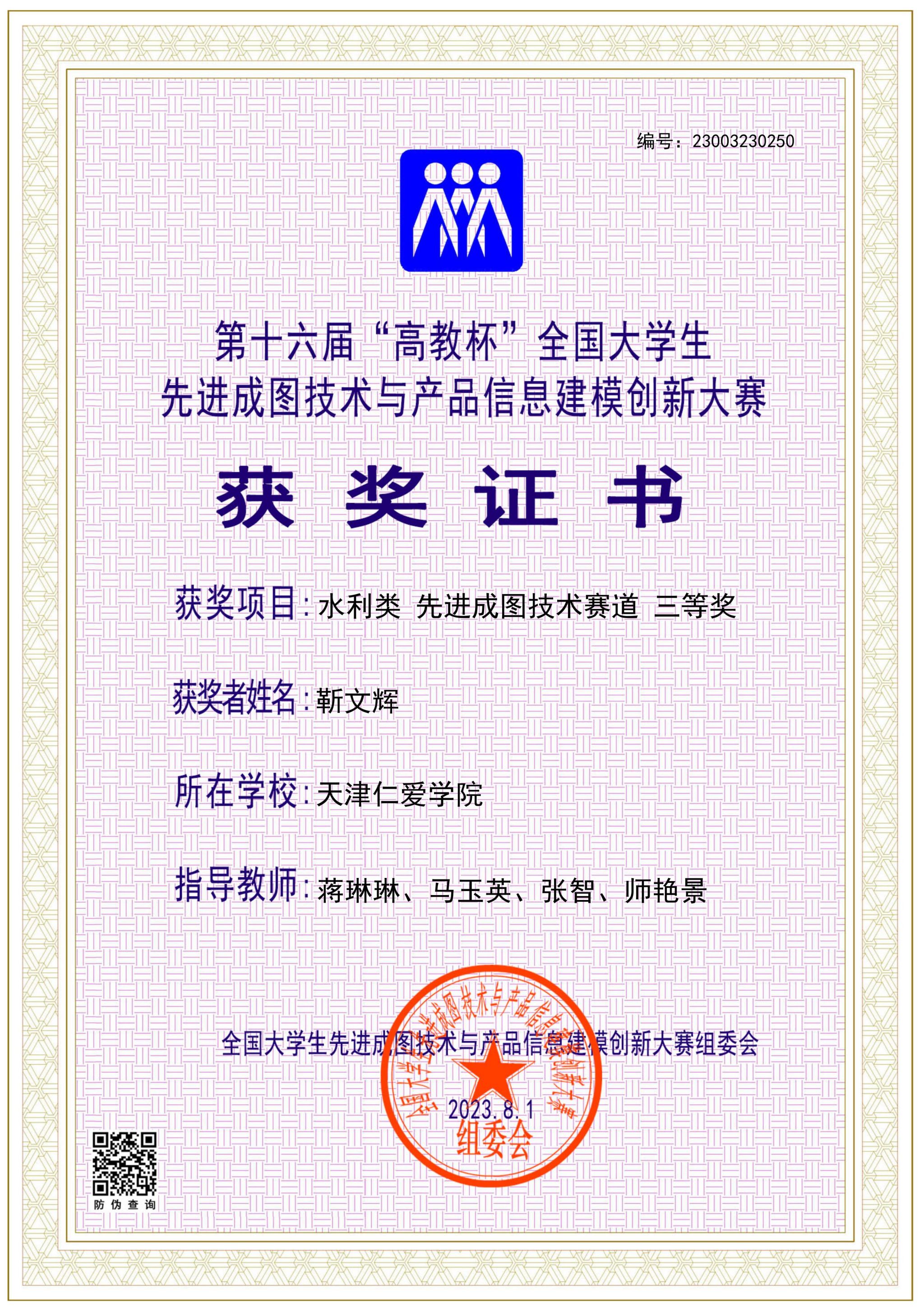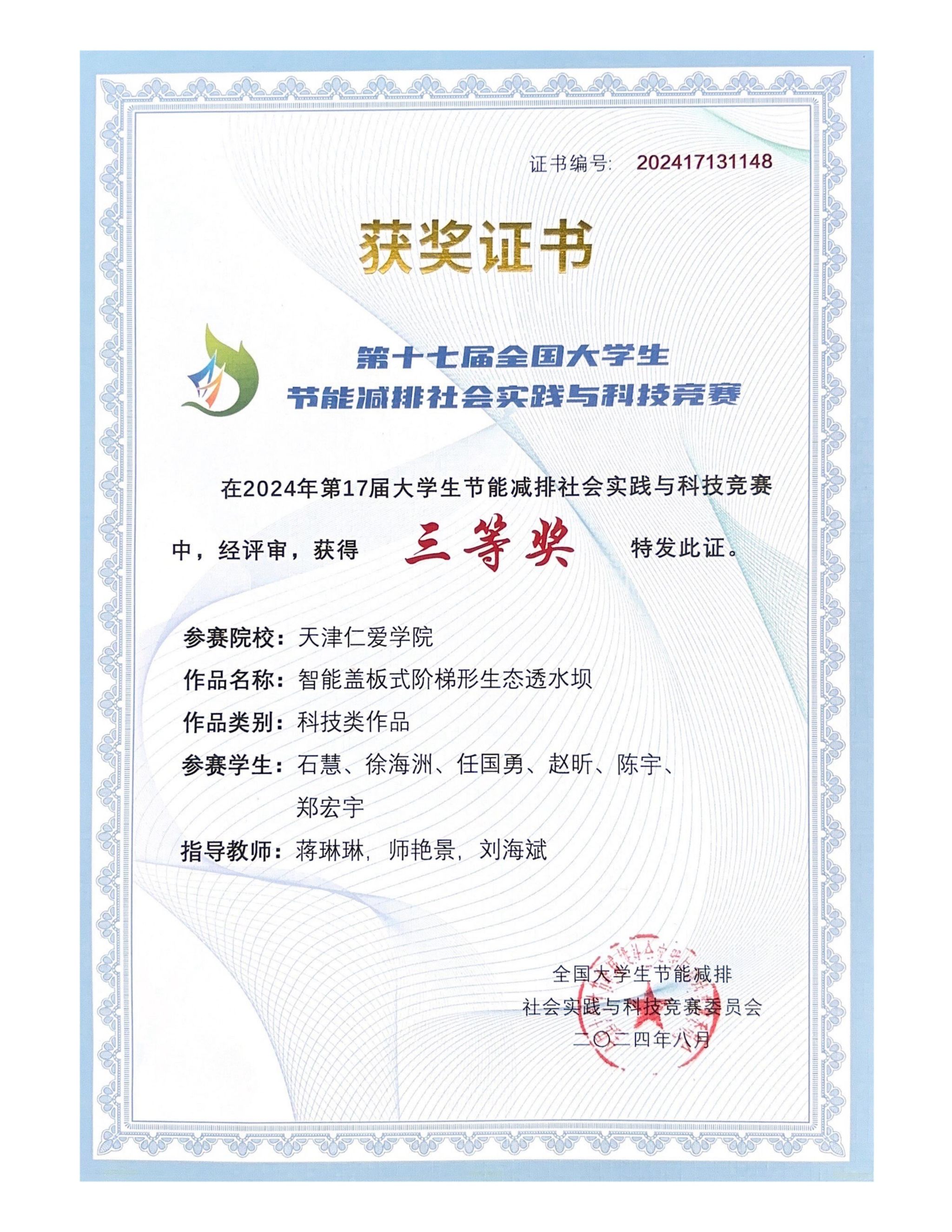 学院长期组织学生参加入选中国高等教育学会“全国普通高校学科竞赛排行榜”的学科竞赛,2024至2025年,获大学生先进成图技术与产品信息建模创新大赛国家级11项、省级130项,中美青年创客大赛全国一等奖1项、省级二等奖1项,全国大学生水利创新设计大赛全国一等奖2项、三等奖1项,全国大学生节能减排社会实践与科技竞赛全国三等奖1项,一带一路暨金砖国家技能发展与技术创新大赛全国一等奖1项、三等奖2项,全国高校 BIM 毕业设计创新大赛全国优秀奖3项,全国大学生结构设计竞赛省级奖8项,中国国际大学生创新大赛省级奖9项,“挑战杯”中国银行天津市大学生创新计划竞赛3项。通过天津市CAD竞赛、天津市投影制图竞赛、大学生先进成图技术与产品信息建模创新大赛天津赛区竞赛等多种赛事,实现全院学生参与省级以上学科竞赛人数占比超15%。学院以竞赛为抓手,实现“以赛促学、以赛促教、以赛促就、以赛育人”,推动教育教学转型与产学研用深度融合,为高质量就业、升学提供有力保障。