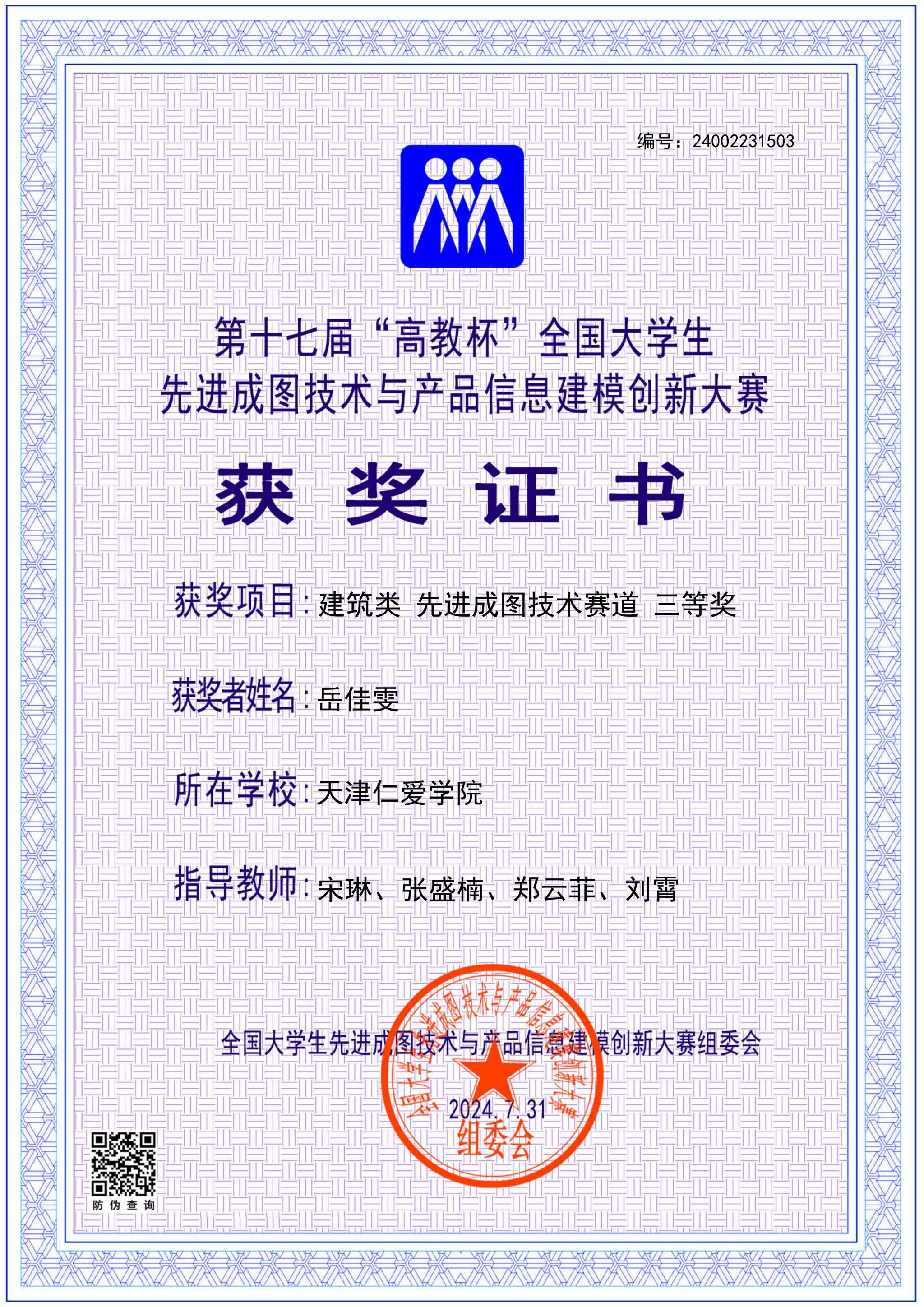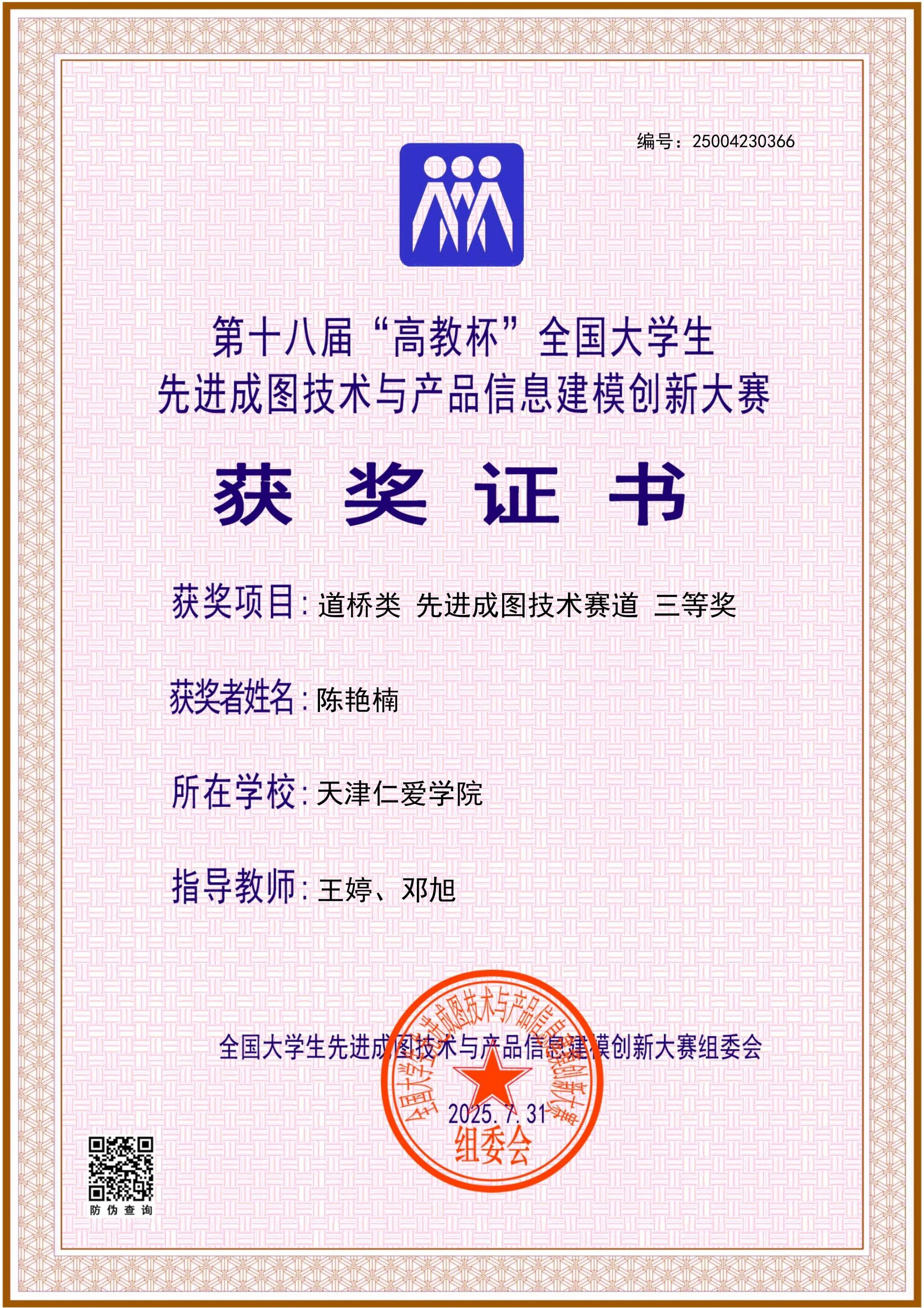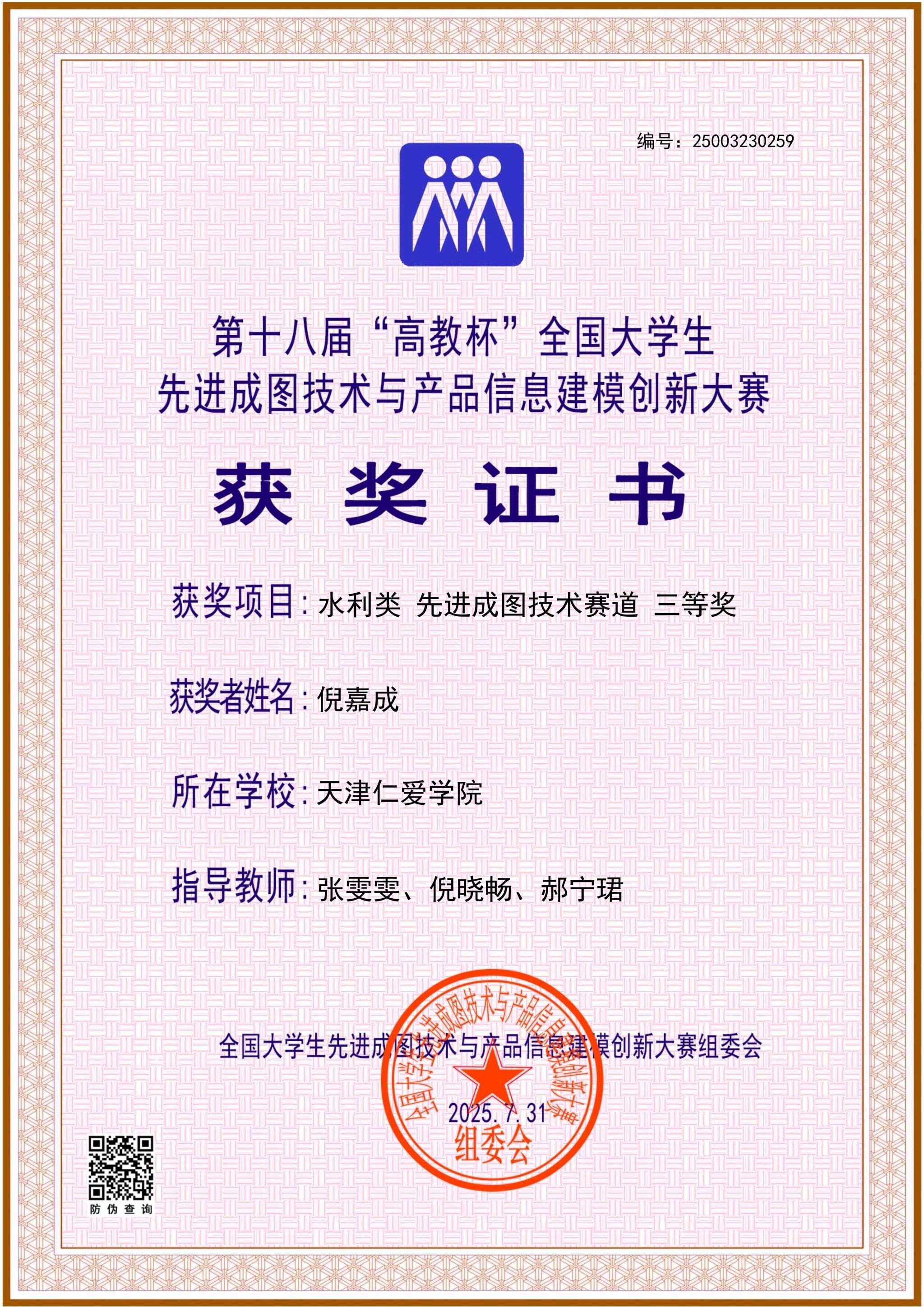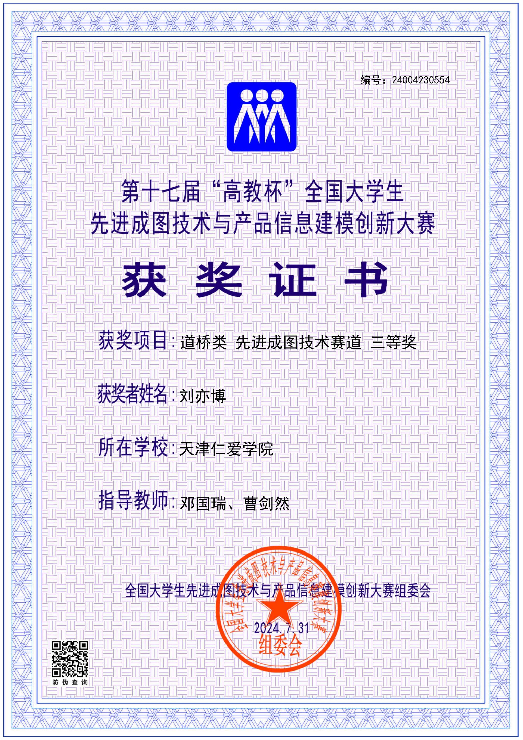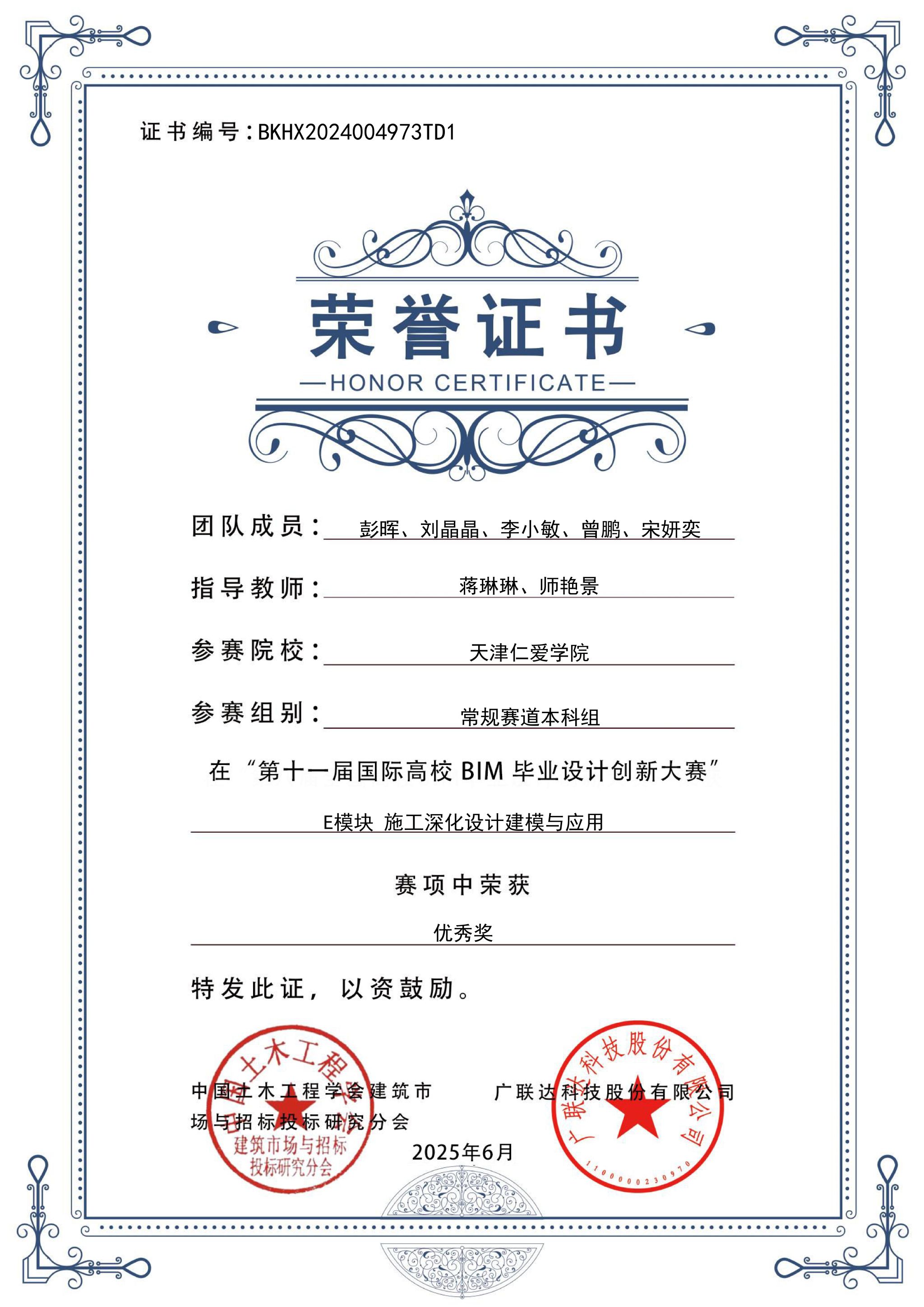 学院长期组织学生参加入选中国高等教育学会“全国普通高校学科竞赛排行榜”的学科竞赛,2024至2025年,获大学生先进成图技术与产品信息建模创新大赛国家级11项、省级130项,中美青年创客大赛全国一等奖1项、省级二等奖1项,全国大学生水利创新设计大赛全国一等奖2项、三等奖1项,全国大学生节能减排社会实践与科技竞赛全国三等奖1项,一带一路暨金砖国家技能发展与技术创新大赛全国一等奖1项、三等奖2项,全国高校 BIM 毕业设计创新大赛全国优秀奖3项,全国大学生结构设计竞赛省级奖8项,中国国际大学生创新大赛省级奖9项,“挑战杯”中国银行天津市大学生创新计划竞赛3项。通过天津市CAD竞赛、天津市投影制图竞赛、大学生先进成图技术与产品信息建模创新大赛天津赛区竞赛等多种赛事,实现全院学生参与省级以上学科竞赛人数占比超15%。学院以竞赛为抓手,实现“以赛促学、以赛促教、以赛促就、以赛育人”,推动教育教学转型与产学研用深度融合,为高质量就业、升学提供有力保障。