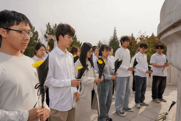 全体师生代表整齐列队、神情庄重,在烈士纪念碑前肃立注目。两学院团总支代表缓步上前,郑重向烈士纪念碑敬献鲜花,表达对革命先烈的无限敬仰与深切缅怀。随后,全体人员低头肃立默哀三分钟,静默之中,哀思绵长,向为国家独立、民族解放、人民幸福抛头颅、洒热血的革命先烈致以最崇高的敬意。默哀结束后,同学们依次缓步上前,将手中洁白的鲜花轻轻安放于纪念碑前,以最朴素真挚的方式,追思英烈功绩、传承英烈精神,深刻感悟今天的幸福生活是无数革命先烈用鲜血与生命换来的。