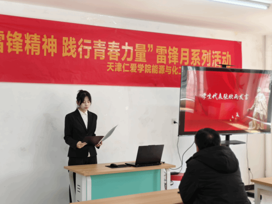 学生代表张欣雨以青春视角发声,分享了自己对雷锋精神的理解与感悟,表达了作为新时代青年学子,愿以雷锋为榜样,从身边小事做起、以点滴行动温暖人心,积极参与志愿服务、践行奉献精神的坚定决心,也呼吁全体同学携手同行,让雷锋精神在校园中薪火相传,用青春力量书写新时代的雷锋故事。