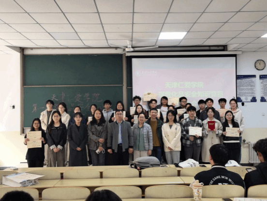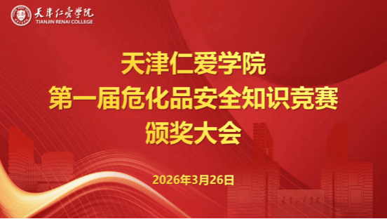2026年3月26日,天津仁爱学院第一届危化品安全知识竞赛暨第二届全国大学生危化品安全知识竞赛校赛颁奖仪式在能源与化工学院隆重举行。本次竞赛由中国化工学会指导,旨在以赛促学、以赛促练,切实提升学生的危化品安全素养,筑牢校园安全防线。